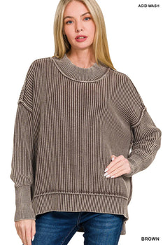 Sold out - Zenana Washed Side Slit Oversized Sweater+sp.priceRaw ? 'price price--on-sale' : 'price'">